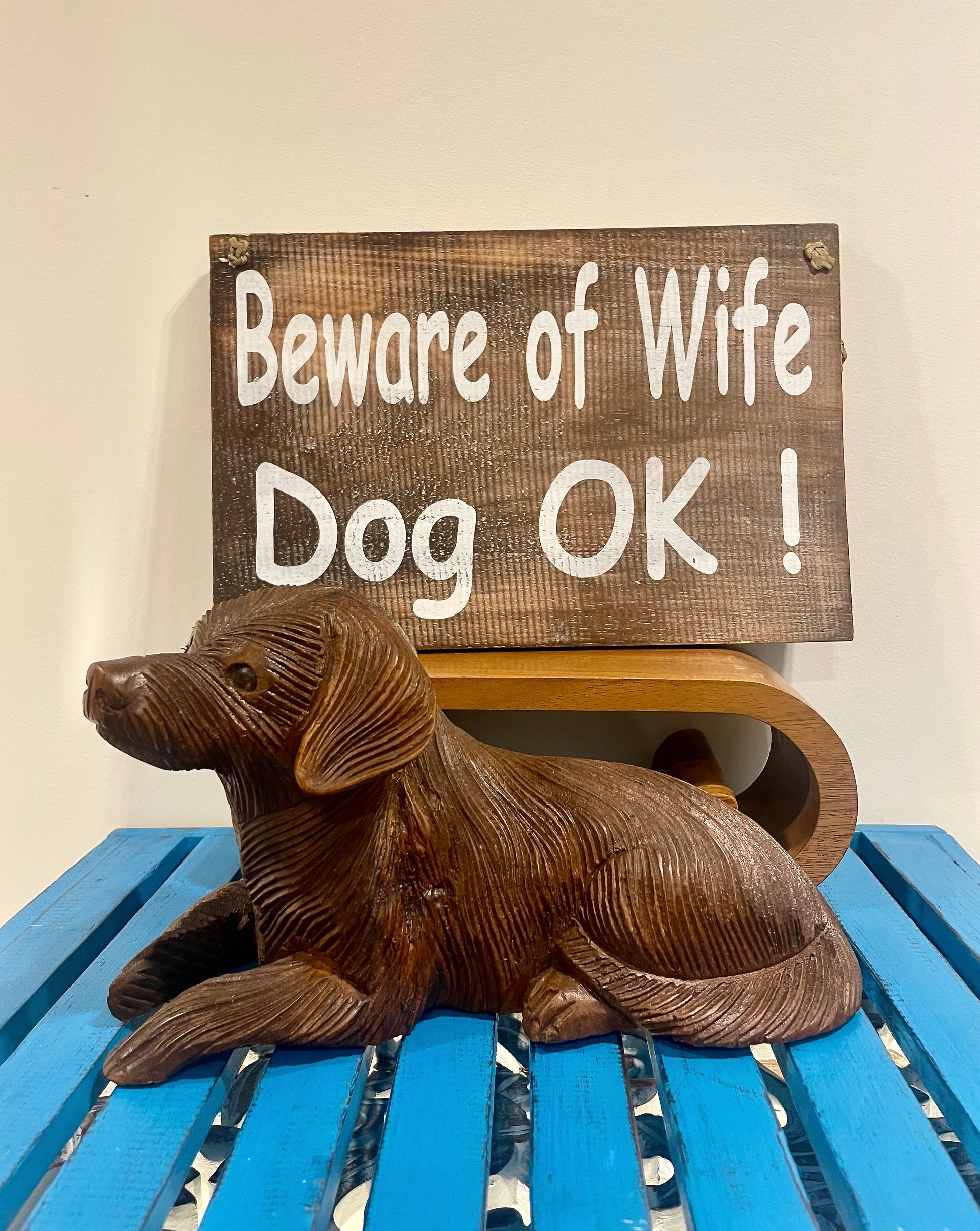 Houten brown washed tekstbord om op te hangen of neer te zetten.