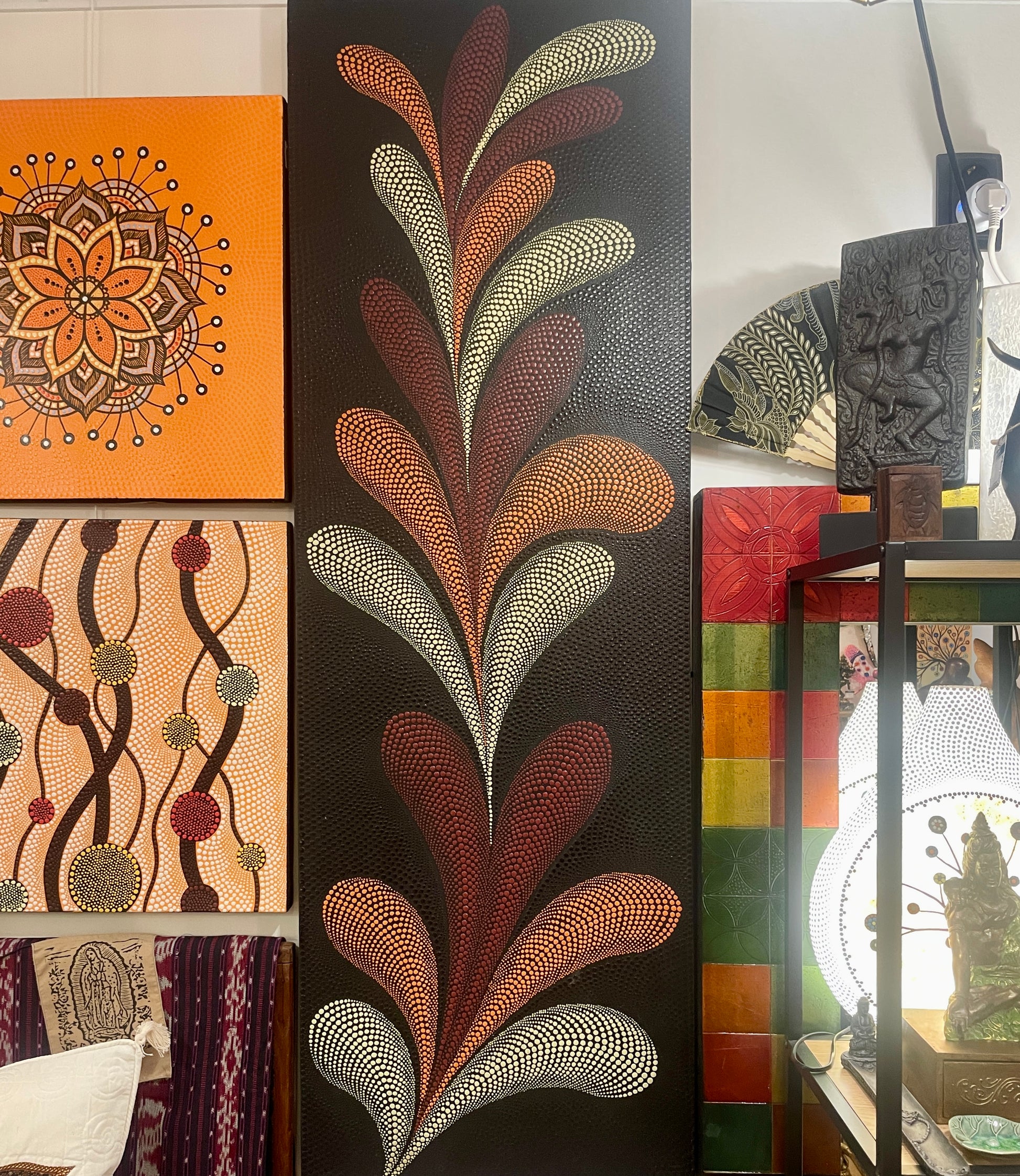 Dot Painting (schilderen in stippen) is de traditionele teken- en schildertechniek van de Australishe Aboriginals en is ruim 50.000 jaar oud.