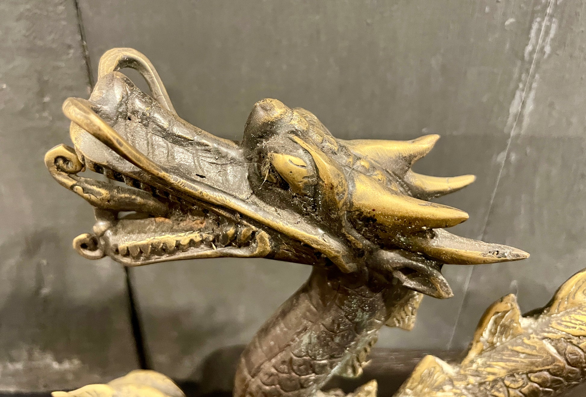 Deze draak is het symbool van de donder, want hij heeft een bal in zijn poot.