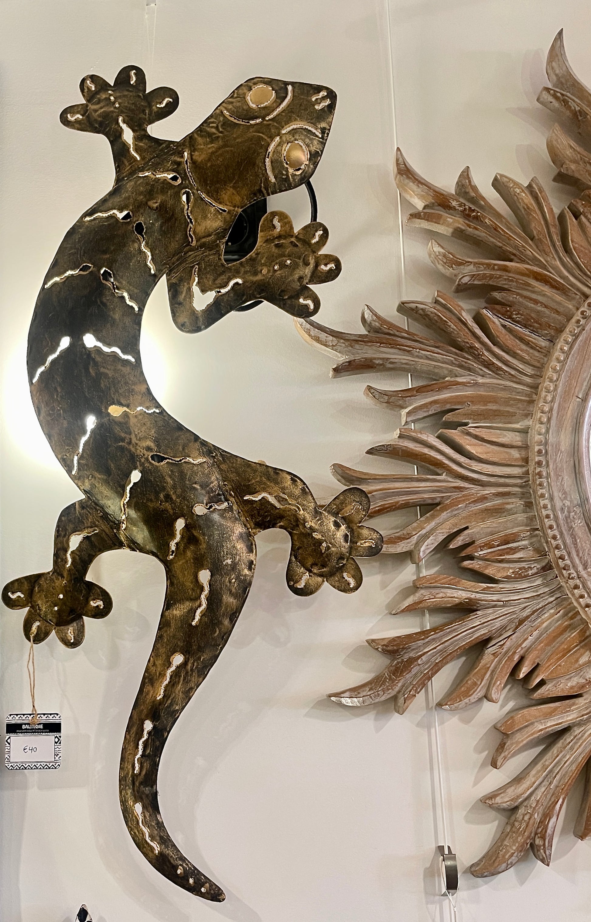 De gekko of hagedis kan zijn staart verliezen wanneer hij door een vijand wordt aangevallen om zo aan het gevaar te ontsnappen. Een nieuwe staart groeit dan vanzelf weer aan. Om die reden symboliseert hij wedergeboorte en geluk of voorspoed. Gekko's of gekko-achtigen (Gekkota) zijn een groep van reptielen die behoren tot de hagedissen. De naam gekko is afgeleid van de klikkende tot gillende geluiden die veel soorten vooral in de paartijd maken.