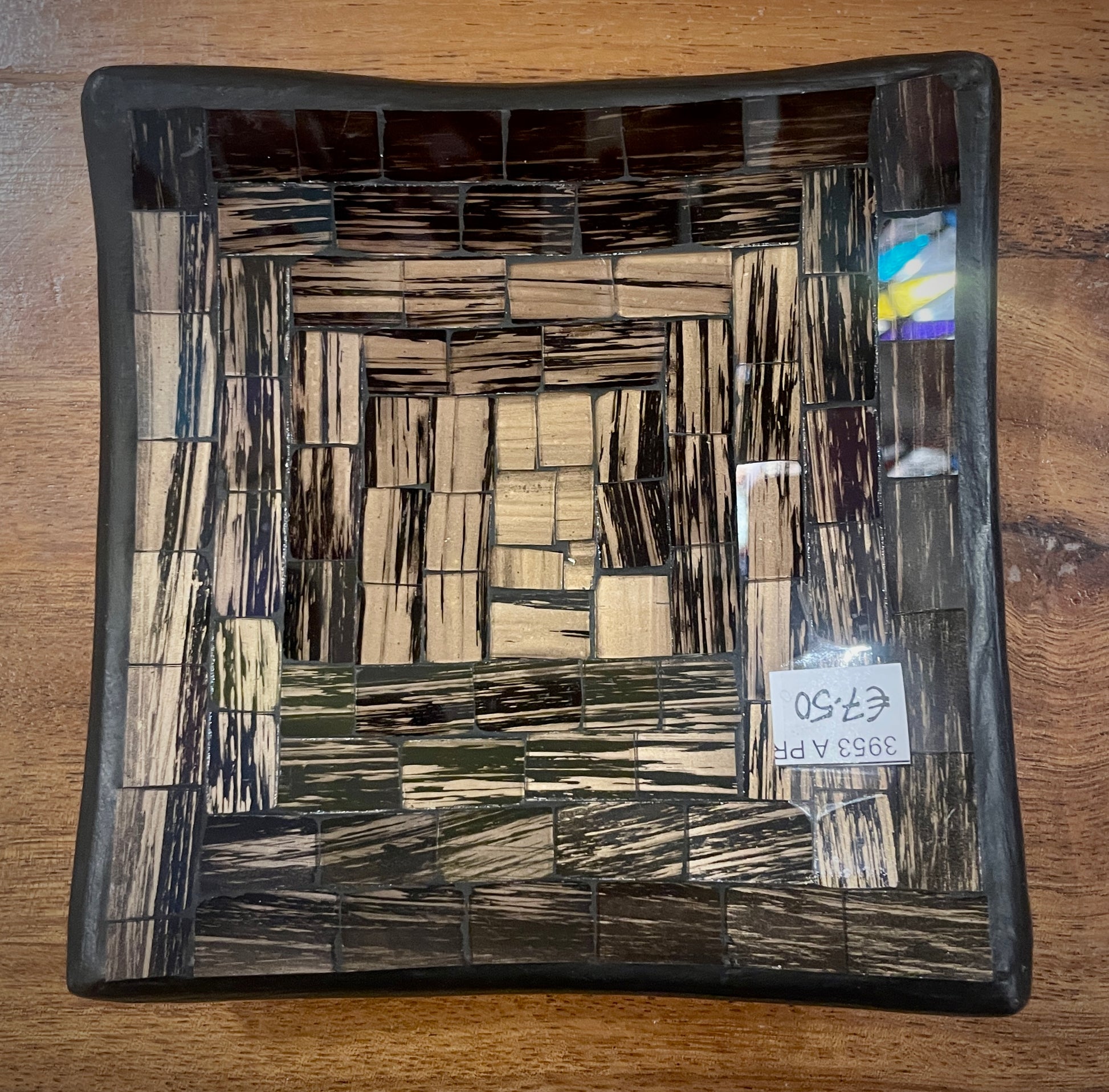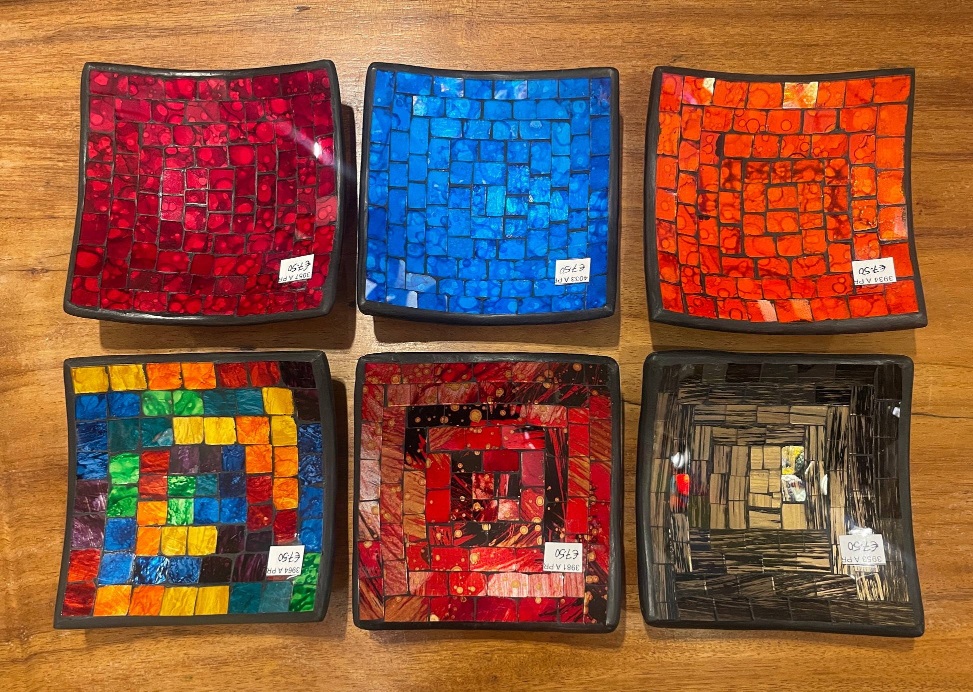 Mozaïek schaaltje met de hand gemaakt van terracotta en stukjes glas, verkrijgbaar in 6 verschillende kleuren.