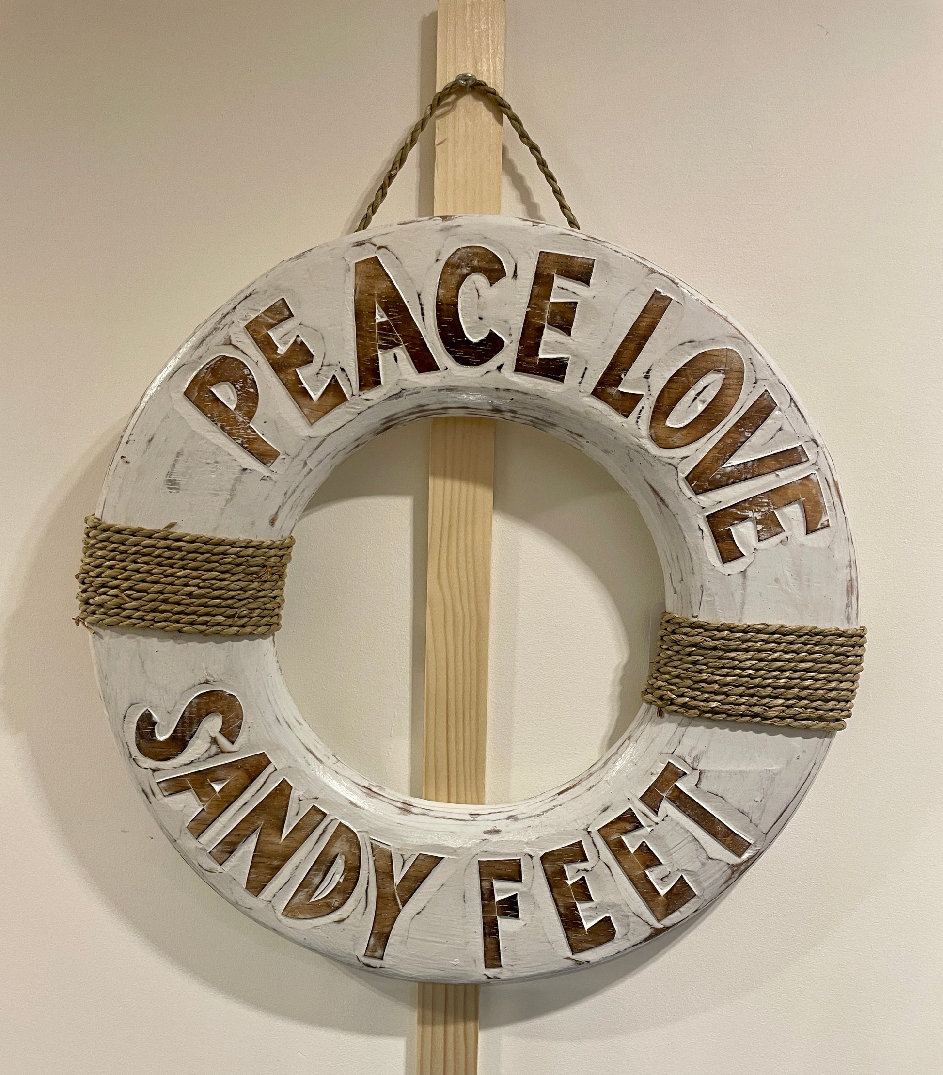 Houten white-washed boei om op te hangen of neer te zetten.