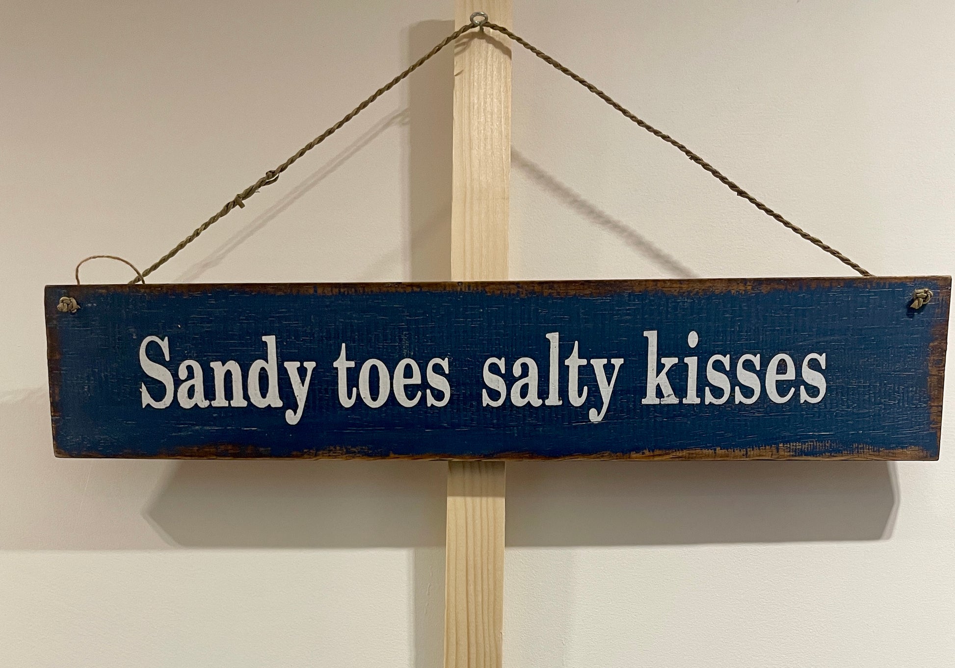 Houten blue-washed tekstbord om op te hangen of neer te zetten.