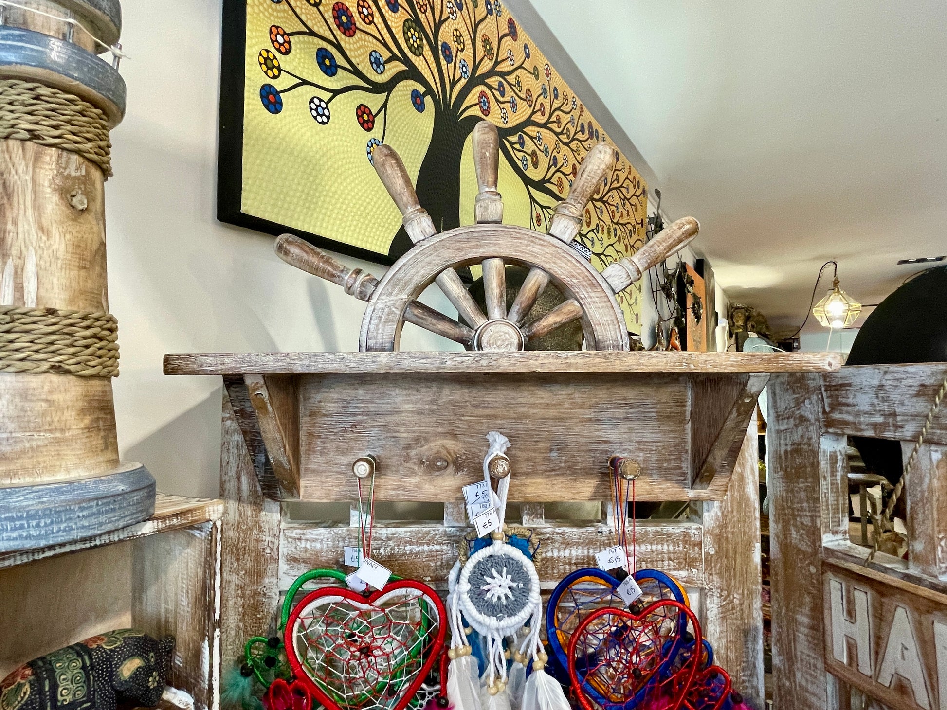 Shipwheel with Shelf and Hooks