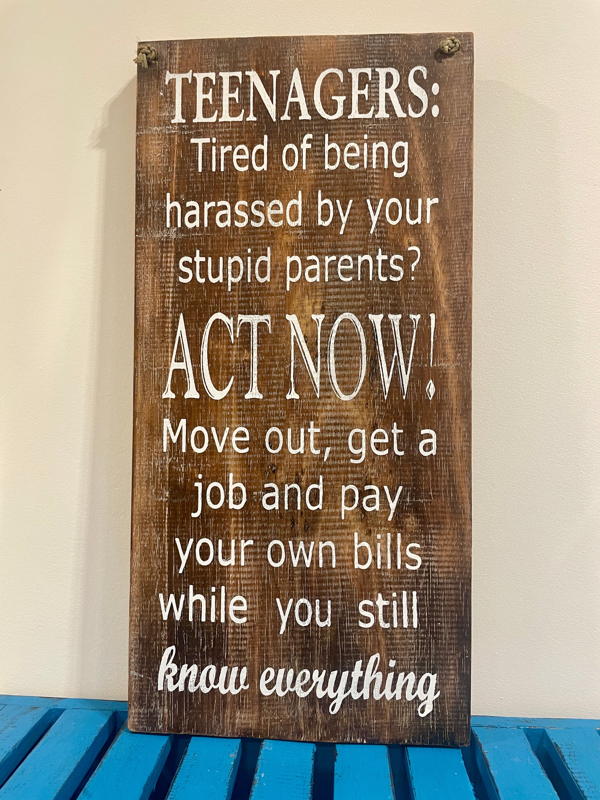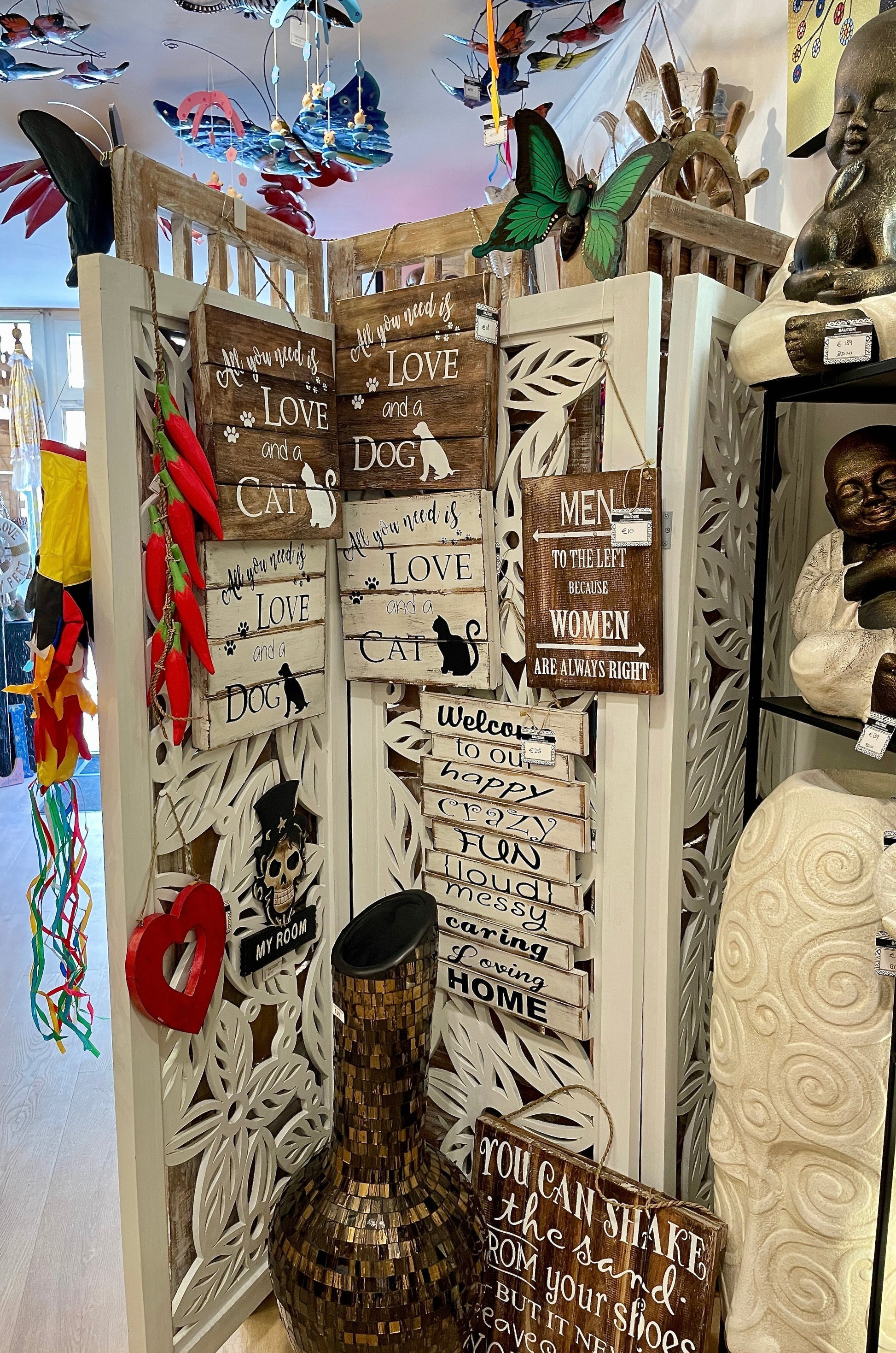 Houten brown washed tekstbord om op te hangen of neer te zetten.
