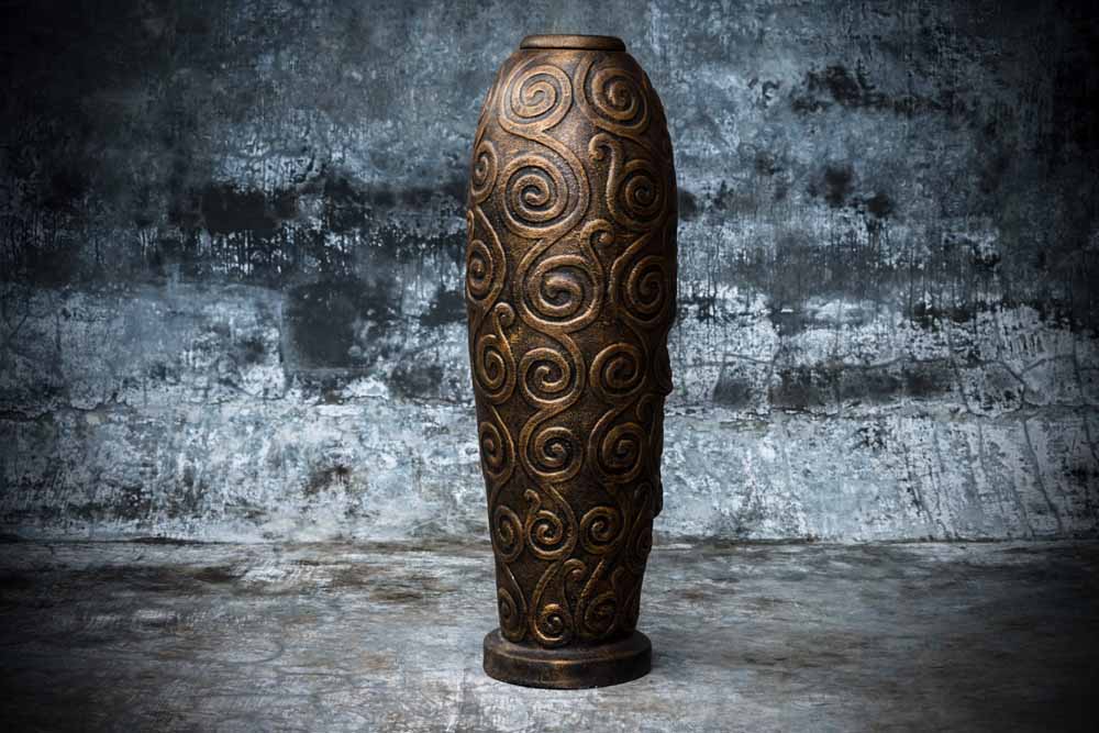 Hun minimalistische stijl had betrekking op vormen die overal in Polynesië voorkomen. Moais zijn uitgehouwen in relatief platte vlakken, de gezichten dragen trotse maar raadselachtige uitdrukkingen. Deze vaas is geïnspireerd op de Moai en komt in twee verschillende kleuren.