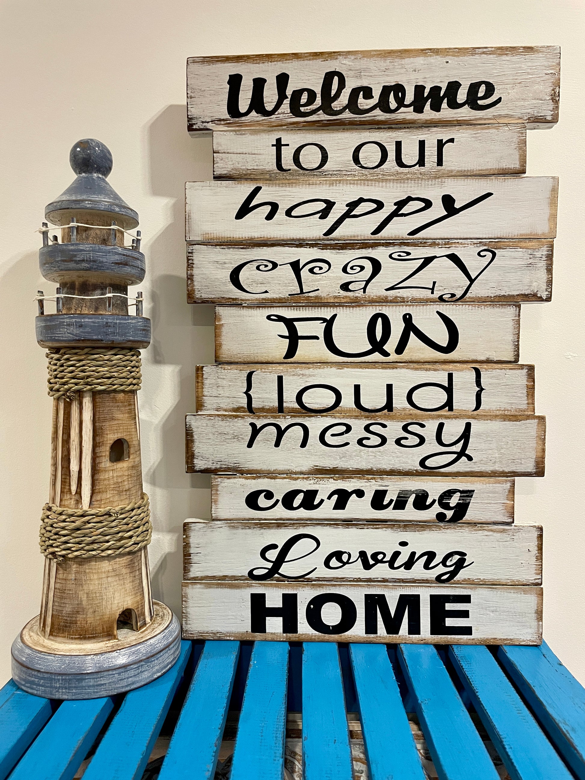 Houten white washed tekstbord om op te hangen of neer te zetten.