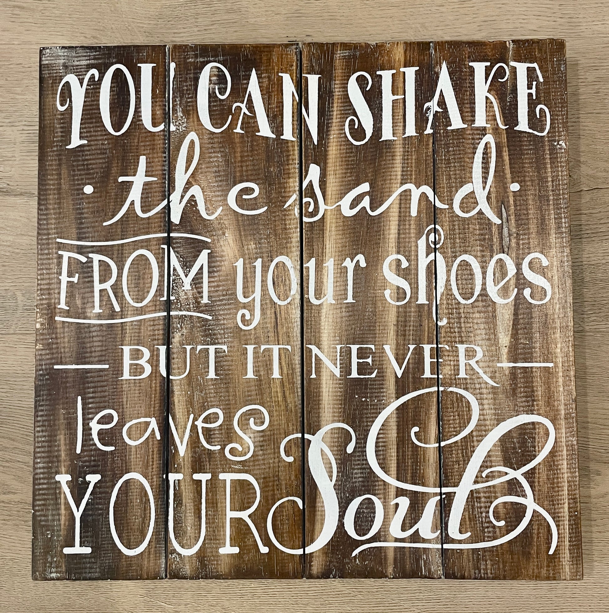 Houten brown-washed tekstbord om op te hangen of neer te zetten.