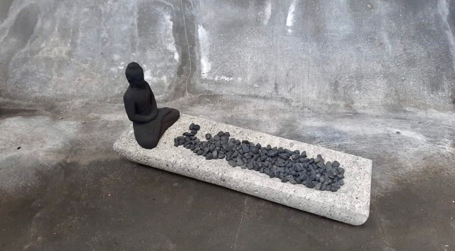 Handgemaakt van massief riviersteen en mix van lavazand en fibre-steel.