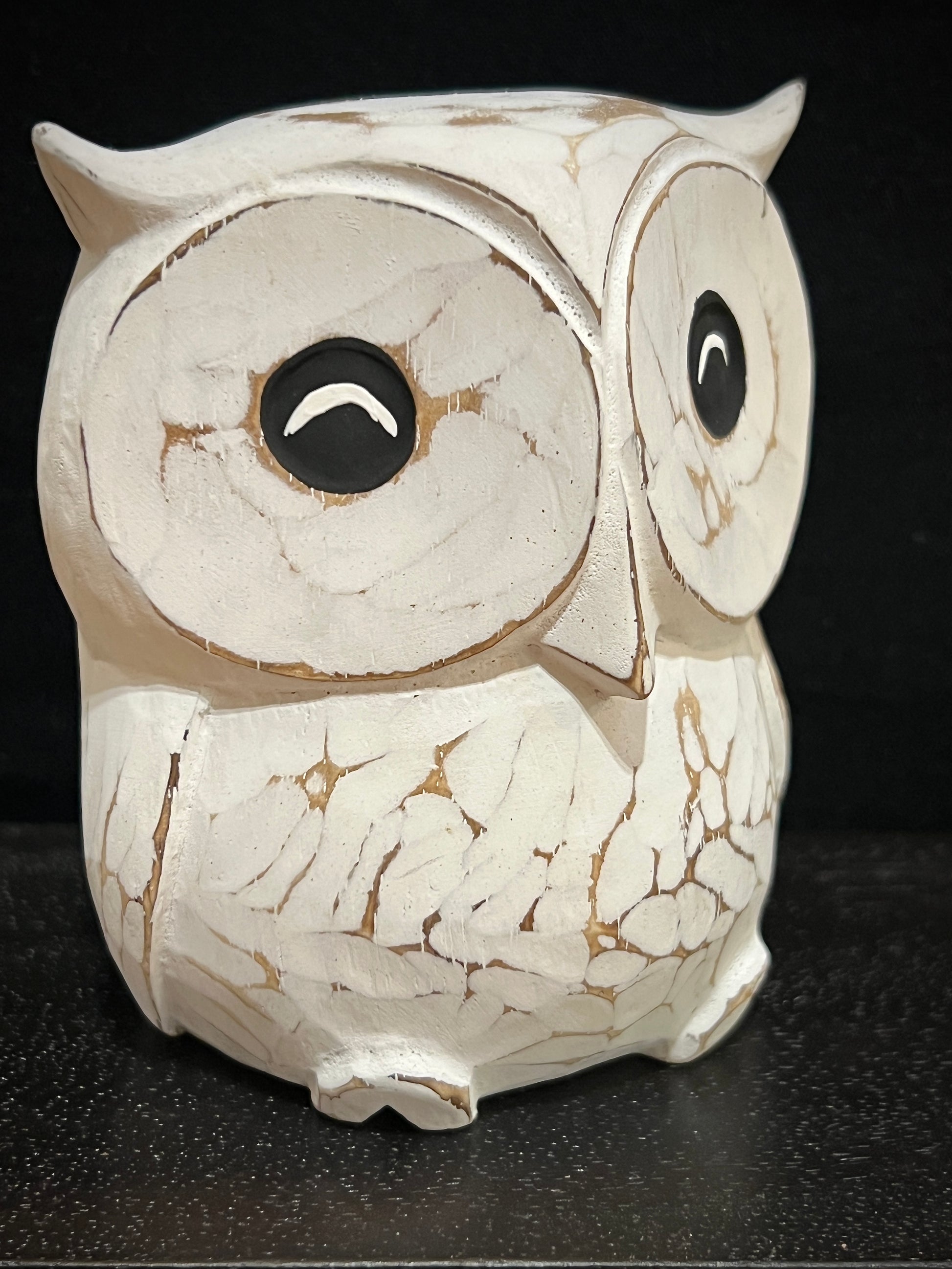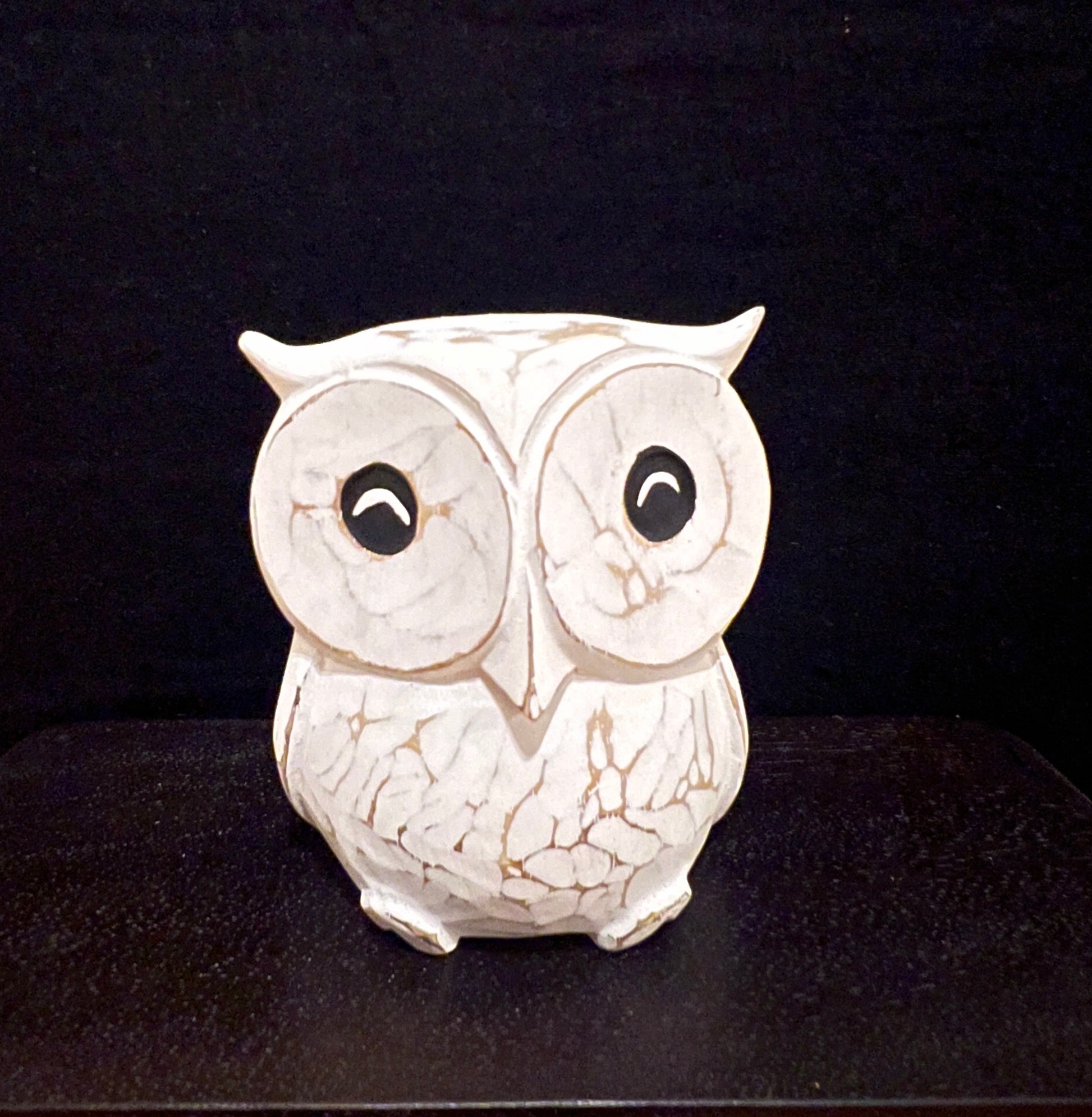 Houten uil, white-washed: H10 x B9 x D8cm
