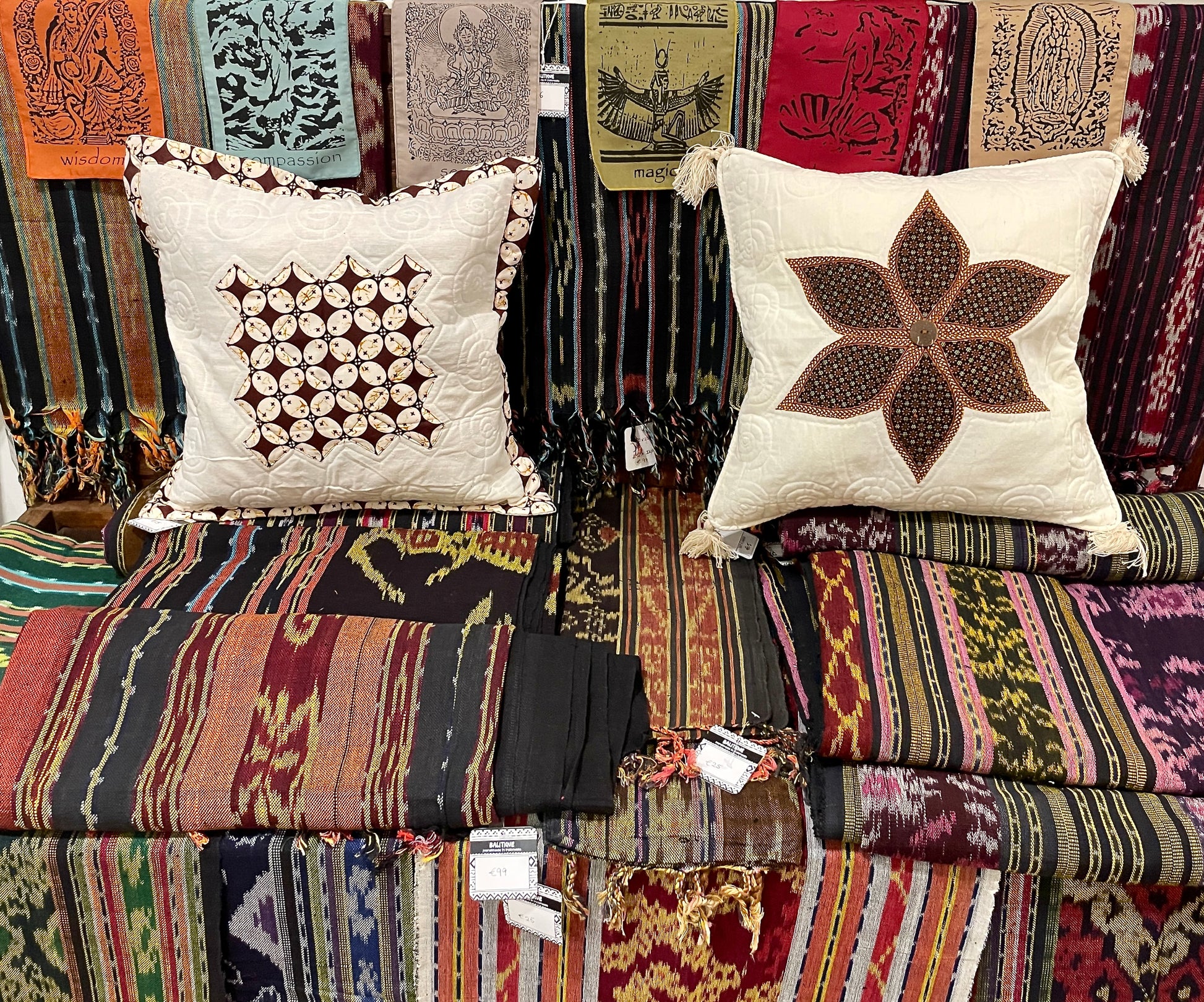 Katoenen kussenovertrek met batik, effen achterkant met rits om het kussen te vullen.