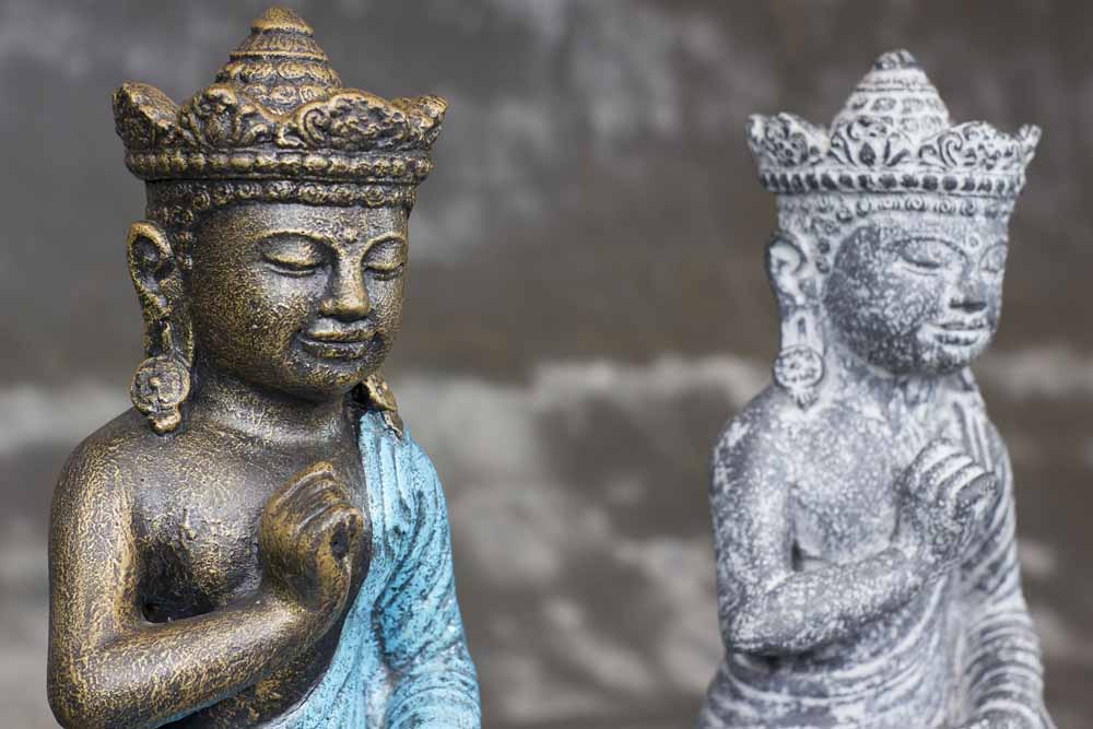 Buddha met opgeheven hand met de handpalm naar buiten; Abhaya Mudra.